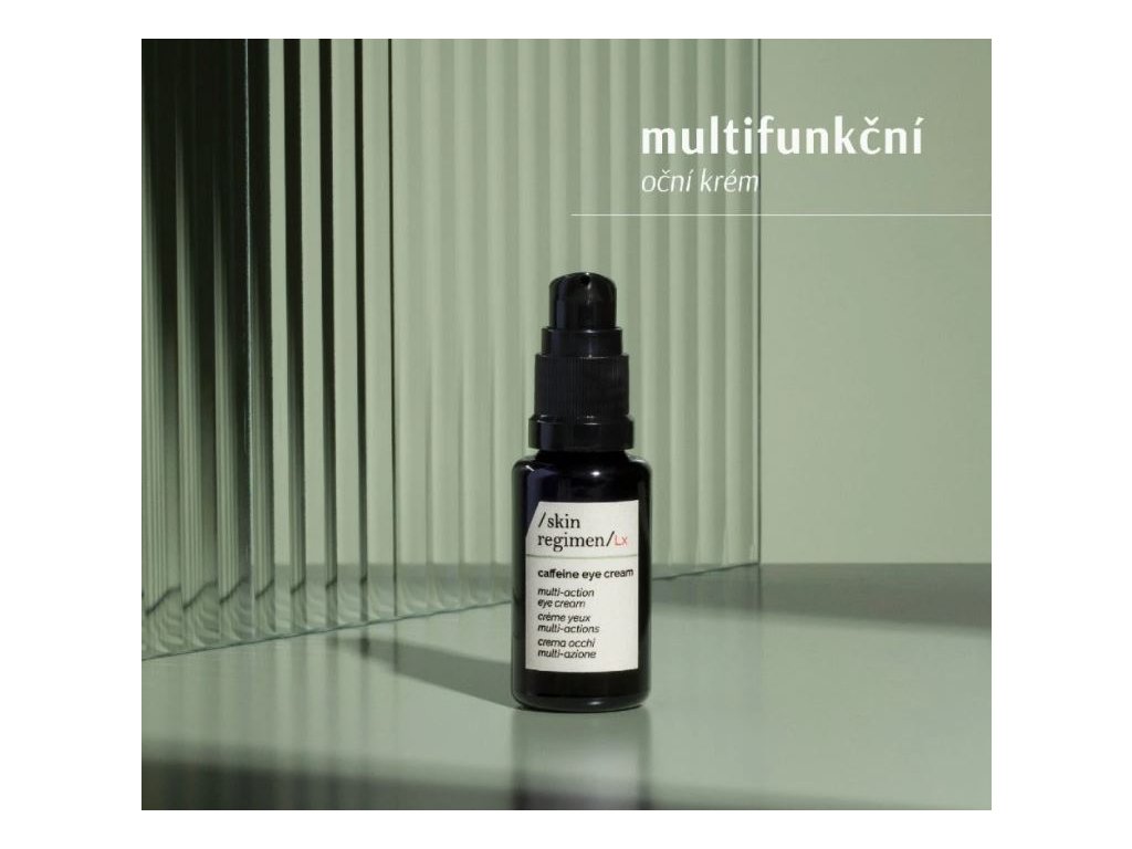 Víceúčelový oční krém je rychle se vstřebávající krém na oční kontury, s čistým kofeinem, rostlinnými výtažky a Longevity Complex™ pro hladší oční kontury. Lehká textura je také perfektní pro aplikaci na oční víčka, přestože je bohatý na biomimetické přísady, jako je bambucké a illipe máslo, skvalan a glycerin. Ideální pro snížení vzhledu váčků, tmavých kruhů a matných očních víček. Složení vhodné pro nositelky kontaktních čoček. Vyzkoušejte /skin regimen/Lx Caffeine Eye Cream.