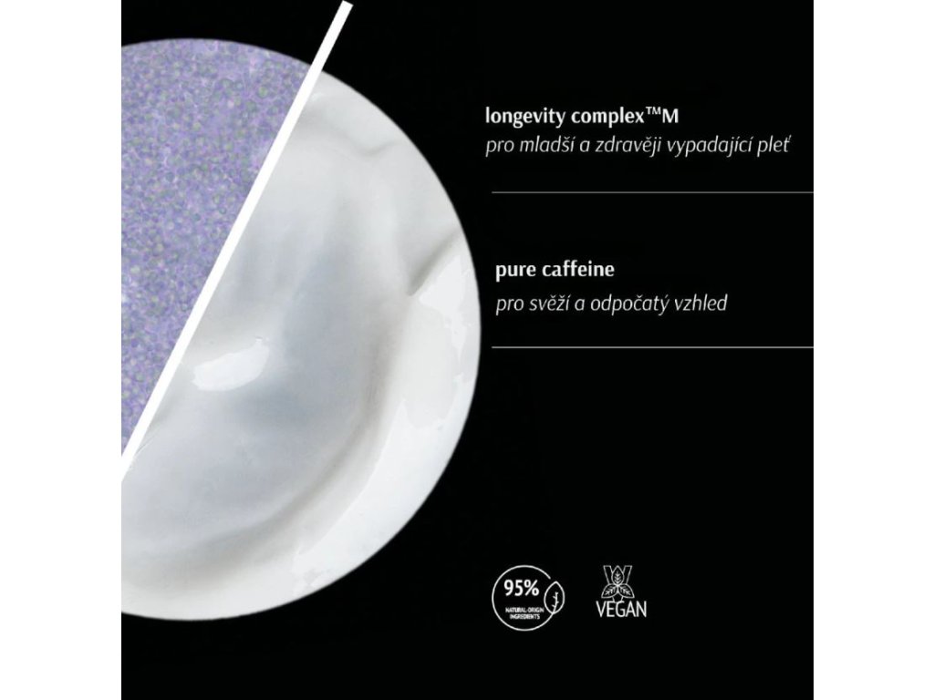 - Čistý kofein = Výrazně zlepšuje mikrocirkulaci, snižuje výskyt tmavých kruhů a otoků.